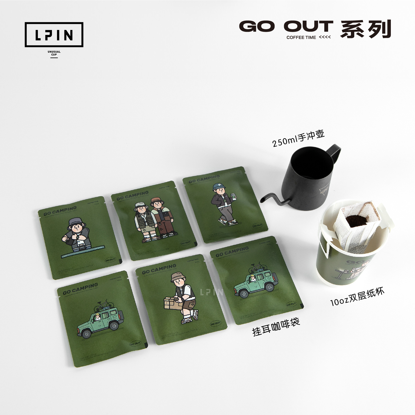 【耳かけコーヒー袋と紙箱コーヒー豆缶とコーヒーギフトボックス】go out屋外コーヒー包装用品