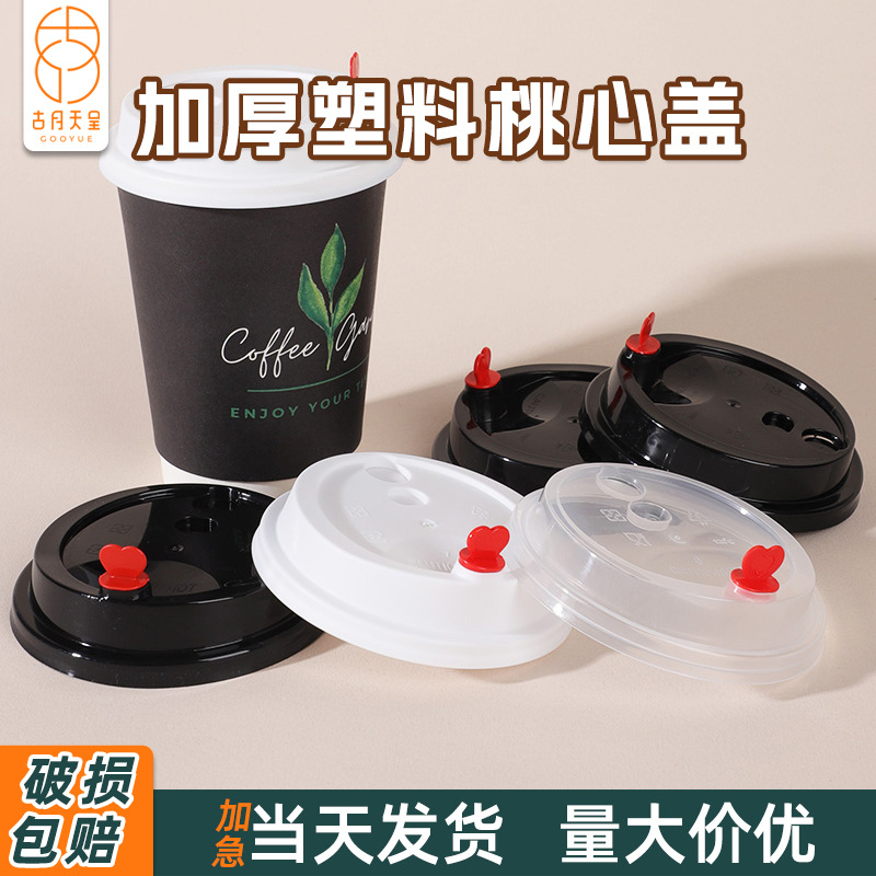 使い捨て愛蓋90口径分体桃心蓋コーヒーミルクティー紙コップ蓋食品級桃心射出蓋