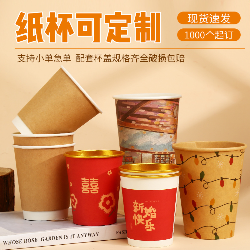 メーカー卸売り使い捨て紙コップ厚手お茶カップ家庭用コップホットコーヒーカップ商用広告紙コップ