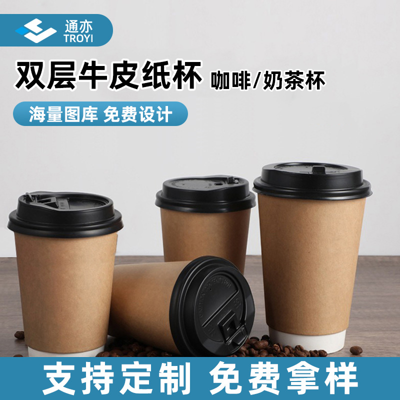 二重中空使い捨て蓋付きミルクティーコーヒー豆乳断熱テイクアウト包装牛皮熱飲紙コップカスタマイズ