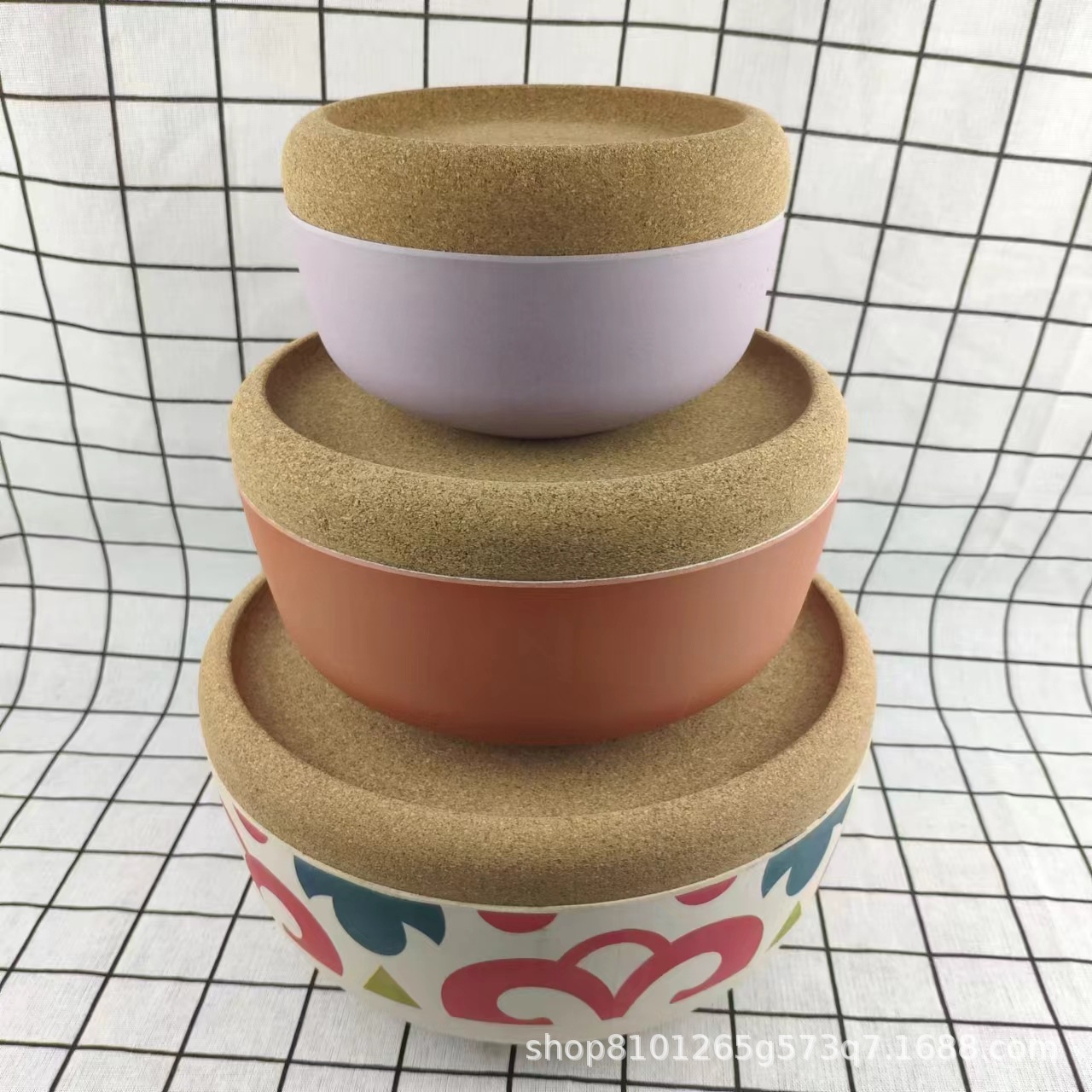 サラダボウル用のカスタムメイドのコルク蓋、果物や野菜の保存に、図面に従ってサンプル作成、ロゴ印刷、専用の蓋付きコルク栓