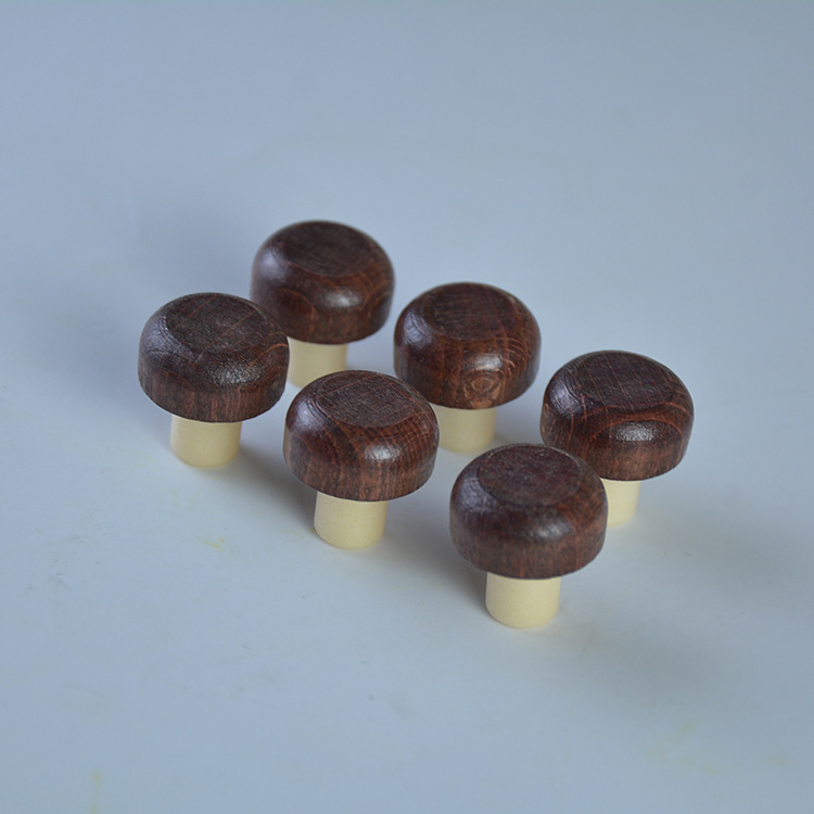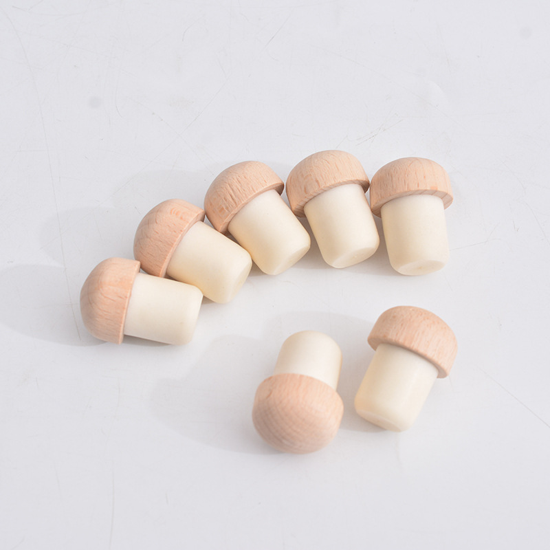 キノコの頭の実木の瓶の栓は水筒の酒の水を開けてガラスの瓶の口の蓋のT型のコルクの高分子の栓を包装します。