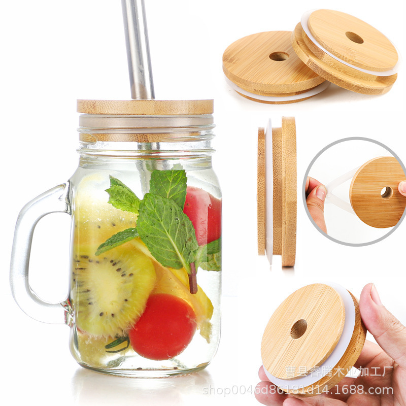 アマゾンメイソンカップ蓋竹木ガラス瓶ストロー穴飲料カップ蓋ストローカップ飲料蓋穴付きクロスボーダー