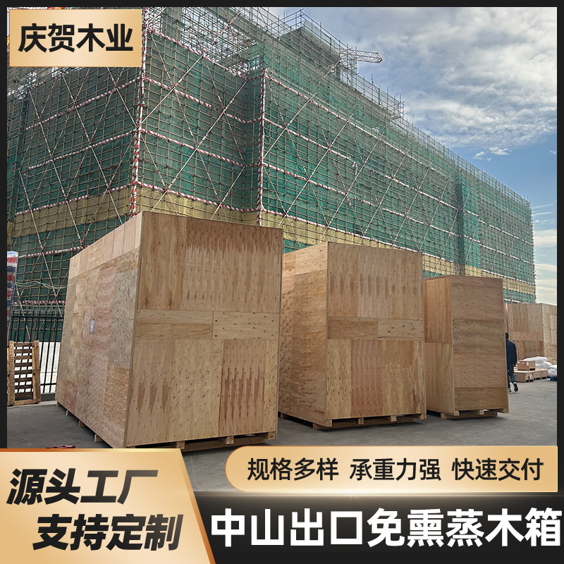 中山大型機器木箱包装、合板製、越境輸出用、無燻蒸木箱、物流輸送用木箱