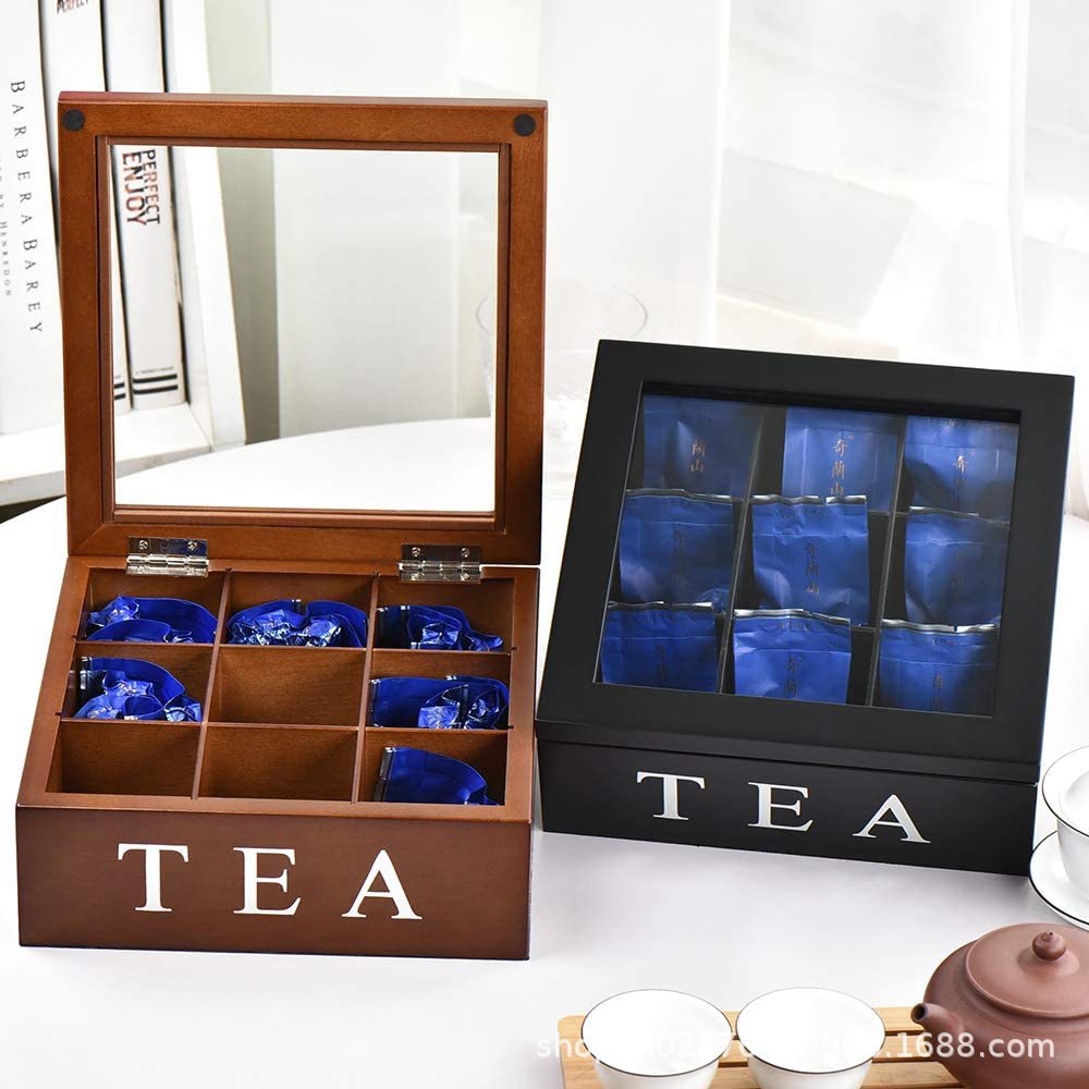 木製収納ケース実木九宮格保存茶缶茶葉包多包装ギフトボックス透明分格木箱