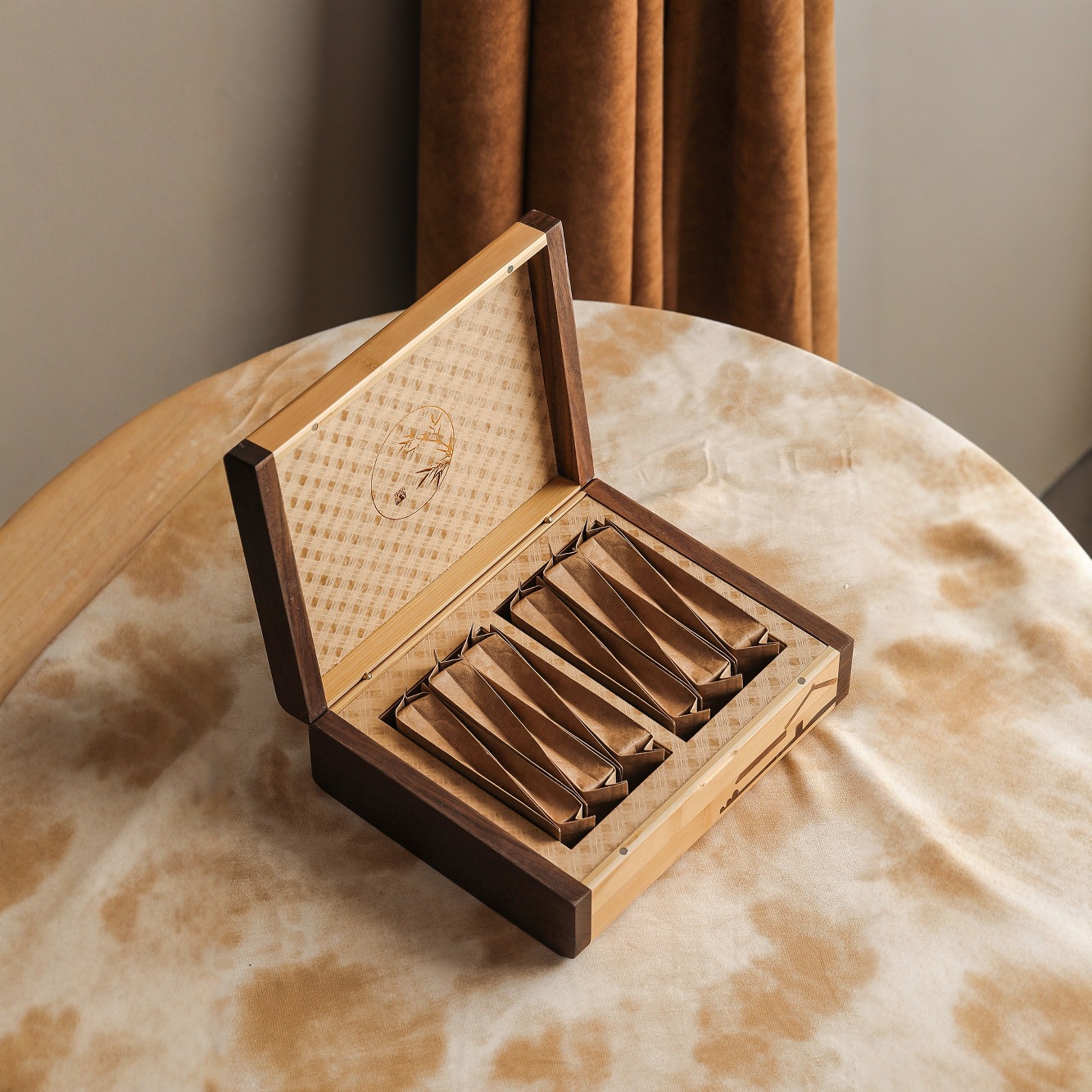 木造の茶の包装箱樺の茶の包装の贈り物の収納箱の樹皮の箱のワインの贈り物の箱