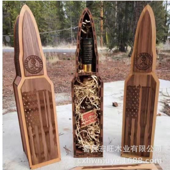 国境を越えた新製品彫刻着脱木製ワインボックス弾丸赤ワインギフトボックスdiy祝日ギフトボックス