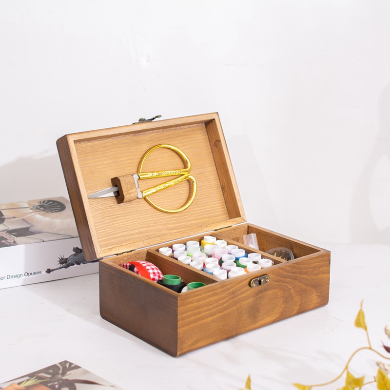木製の裁縫箱セット家庭用携帯カバー縫製道具包装箱レトロ針収納箱