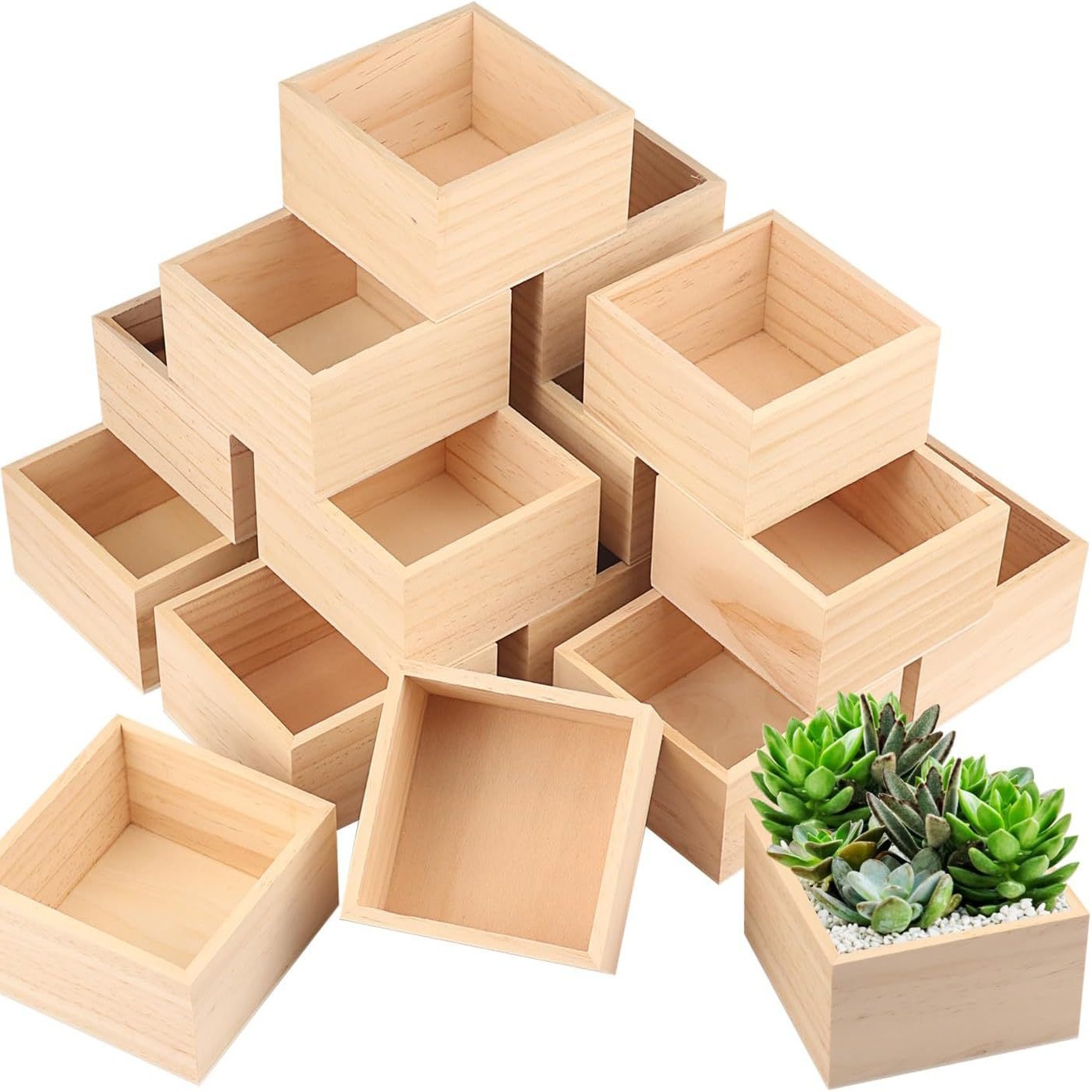 木箱未完成の小さな四角い木箱田舎の木箱はDIY工芸品多肉植物のデスクトップ装飾に使われている