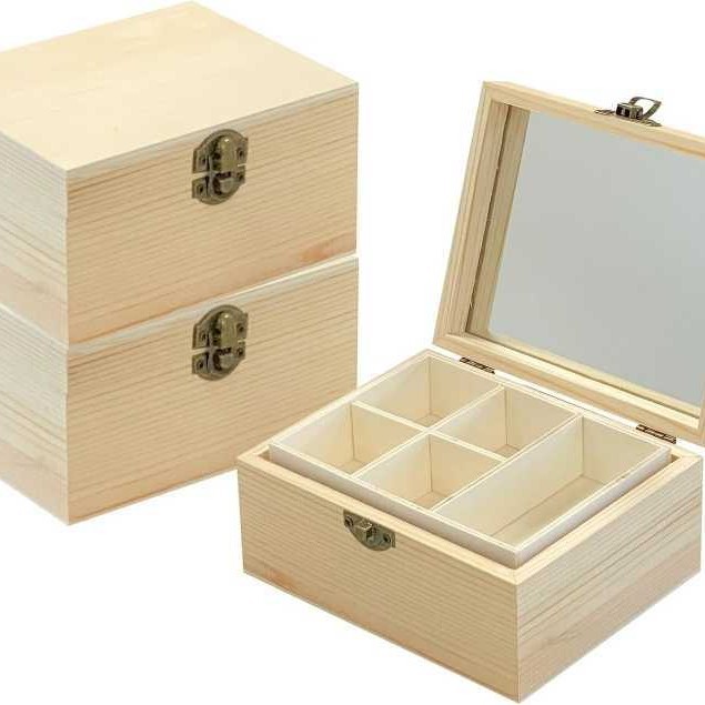 クリエイティブな木製ジュエリーボックス DIY ギフト包装ボックス子供用落書き木箱ガラストップコンパートメント収納ボックス