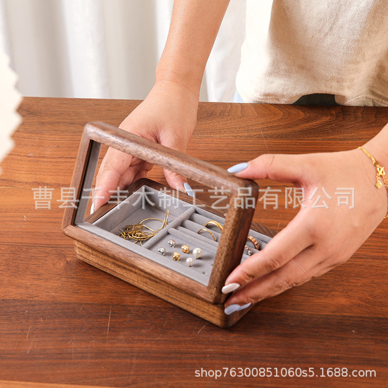 無垢材のジュエリーボックス、イヤリング、ネックレス、リング、記念メダル、木箱、ポータブルジュエリー収納ボックス、クルミのジュエリーボックス