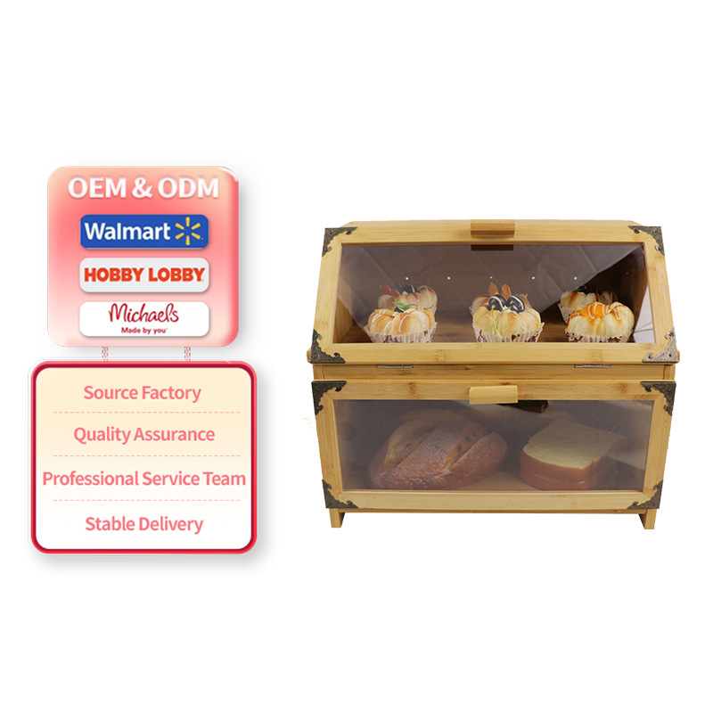 クロスボーダー木製パンボックスケーキショップ大容量スナックペストリーディスプレイ木箱木製キッチントースト収納ボックス