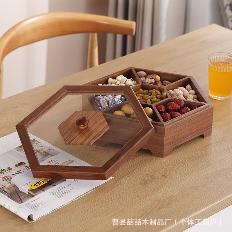 家庭用現物キャンディー箱家庭用分格蓋付き木製ドライフルーツ箱客間茶何ナッツ間食収納箱