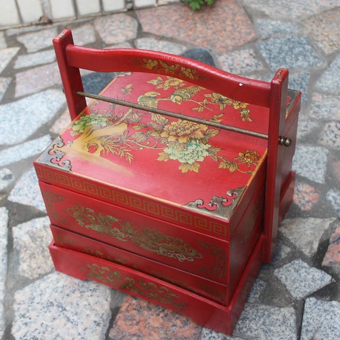 アンティークの手提げかごのレトロな食品箱の結婚祝いの花かごの明清の工芸品の結婚祝いの贈り物の花かごの収納かご