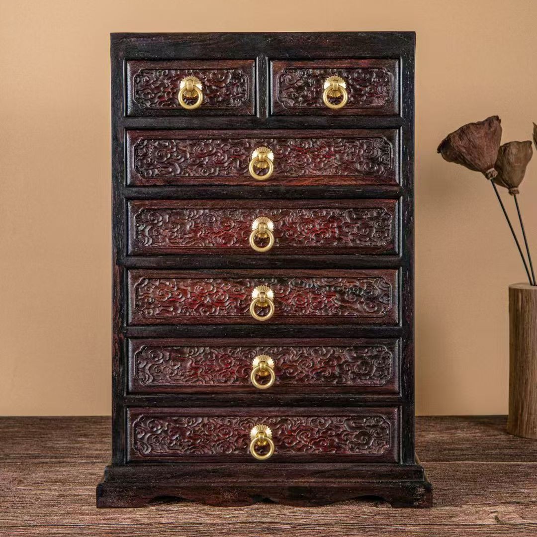 紅酸枝アクセサリーケース実木収納ケース中国式赤木茶餅ケースデスクトップ大容量多層引き出し茶箱