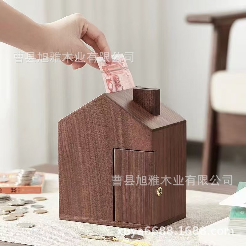 クロスボーダー木製小さな家貯金箱子供小銭入れ木製子供誕生日プレゼントクリエイティブ漫画貯金箱