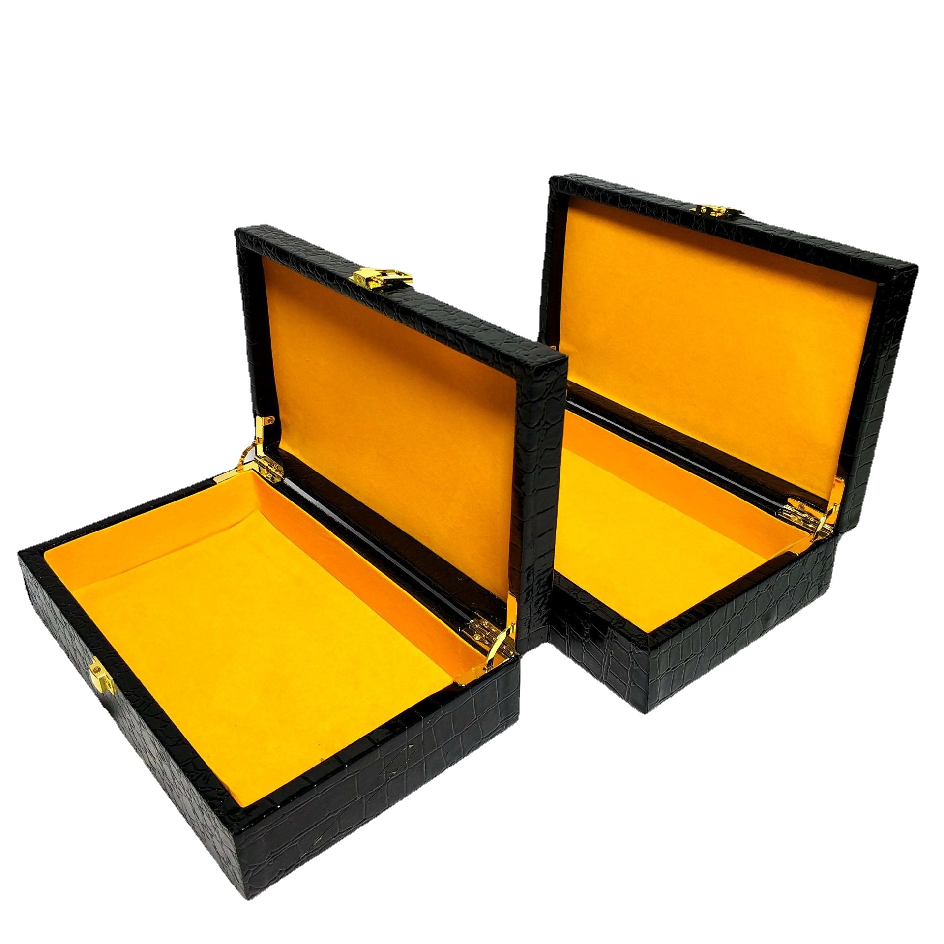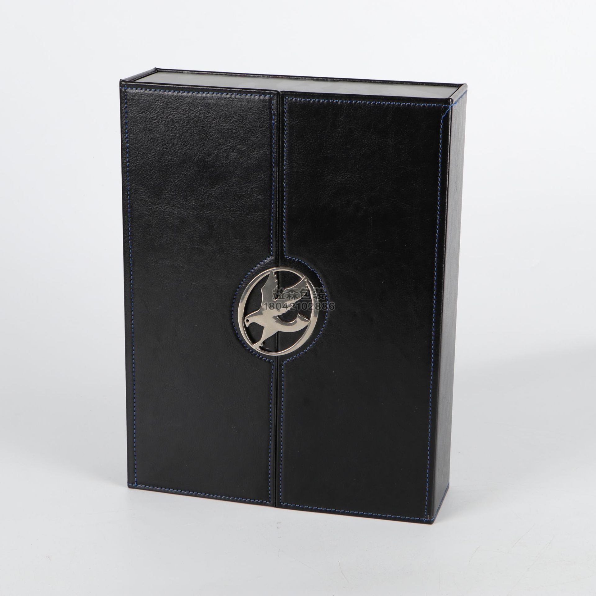 工場カスタマイズされたハイエンドの高級ブラック PU レザー財布ボックス両開きドア金属看板宅配ノートブック収納ボックス
