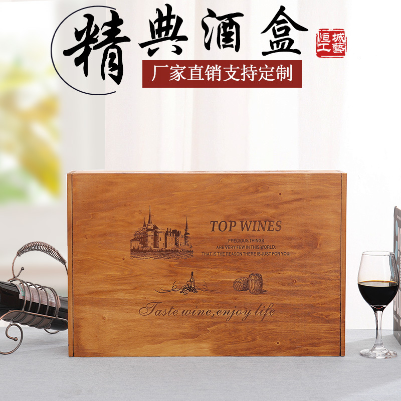 メーカー直販木製ワインケース6本入ワインケース6本実木ケースワイン包装木ケースカスタマイズ可能