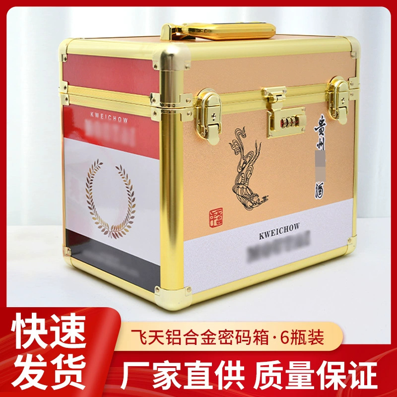 飛天アルミニウム合金暗号箱白酒包装箱6本入り手提げ収納ギフトボックス金属空箱