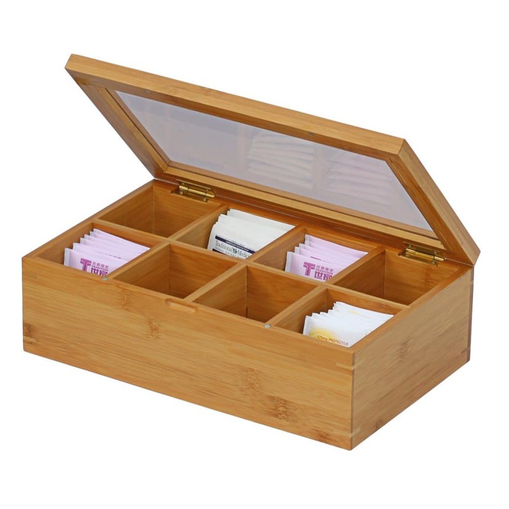 茶葉分格包装木箱家庭用透明ガラス茶包収納箱茶葉木造包装箱木造礼箱