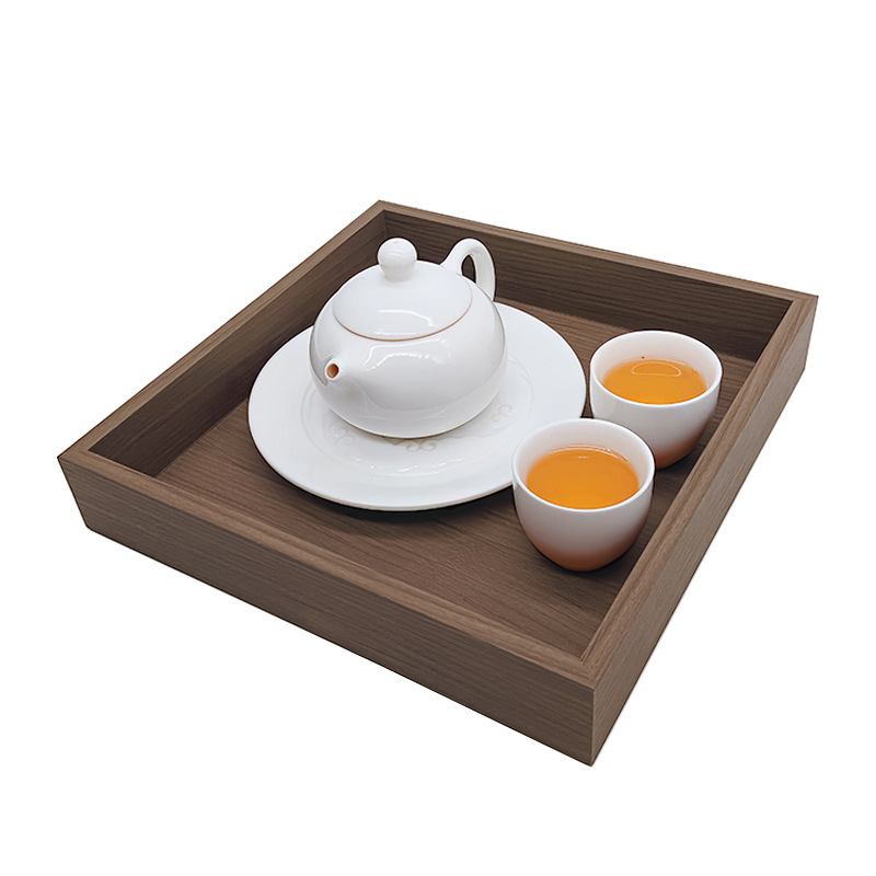 現物は黒胡桃紋の木製の四角い家庭用のお茶のトレーを提供しています。