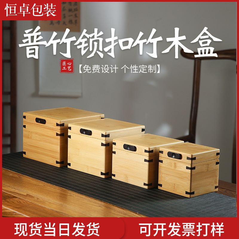 竹製木箱カスタム茶葉ギフトボックス文房具収納ボックス無垢材茶器包装箱卸売