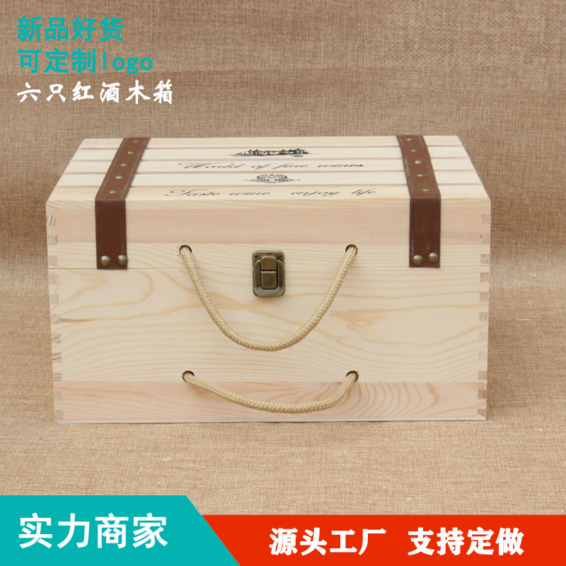 現物六本入り松木酒箱原木色ワイン包装箱白酒実木礼箱カバー手提げ木箱