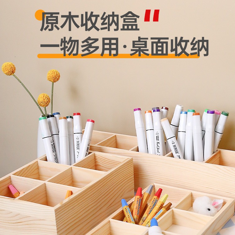 実木六宮格収納ケースデスクトップカラーペン分格整理蓋なし木箱多目的雑物間食収納ケース