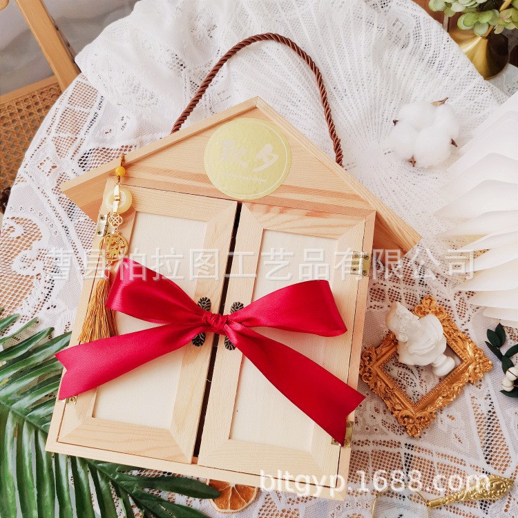 木製月餅箱手提げ茶道具茶葉収納箱二重菓子包装箱中秋節お土産箱