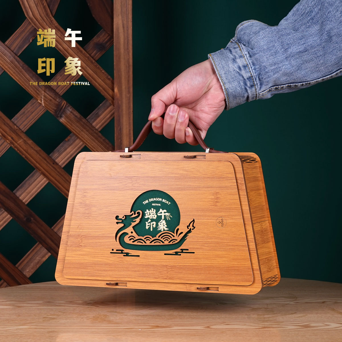 ちまきのギフトボックスの木の包装箱は竹の紋様の木の箱の創意の簡単なホテルの端午の節句の贈り物の箱の卸売りに似せます。