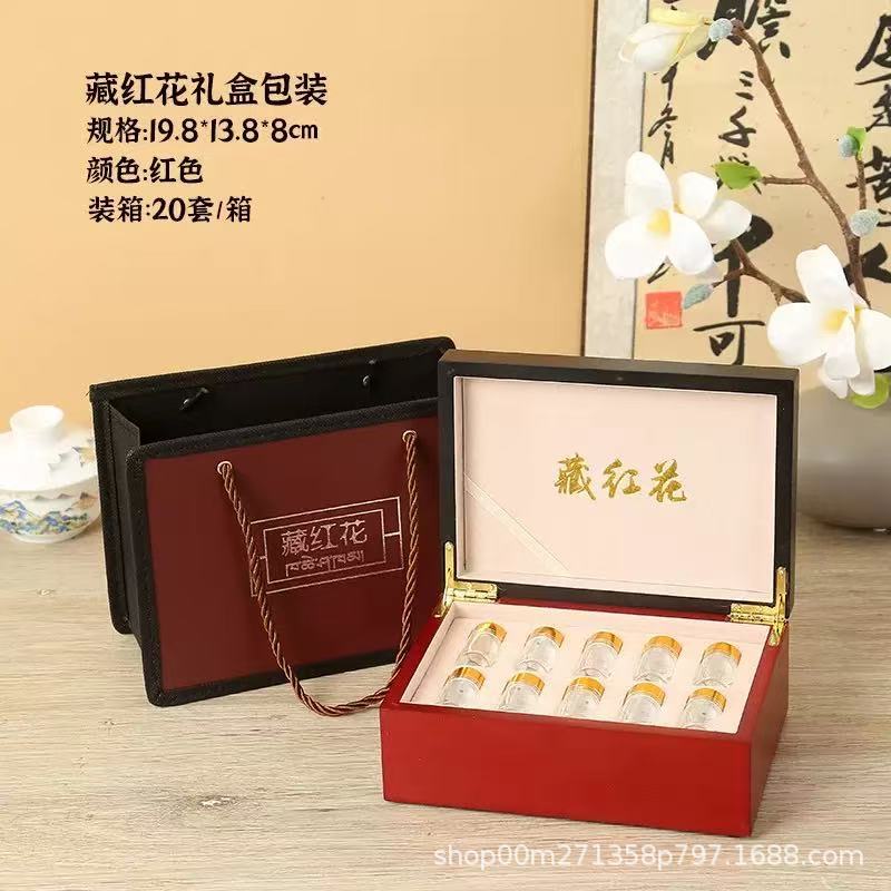 新しいチベット紅花包装ギフトボックスひび木箱箔押しアクリル内瓶空箱健康食品包装箱卸売り