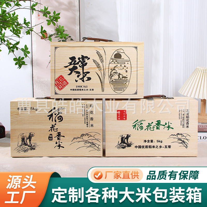 メーカー在庫あり 大米包装箱 汎用タイプ 東北五常産木製ギフトボックス 米花香木箱 印刷可能