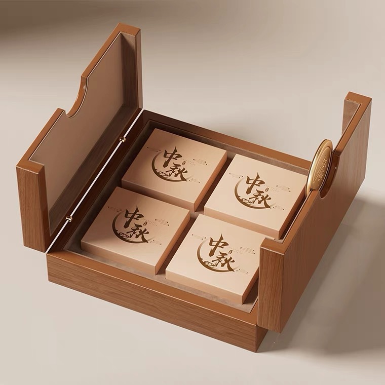 木造の新しい月餅のギフトボックスのダブルドア四粒の月餅の包装箱の通用のお菓子のお土産は木の箱を収納します。