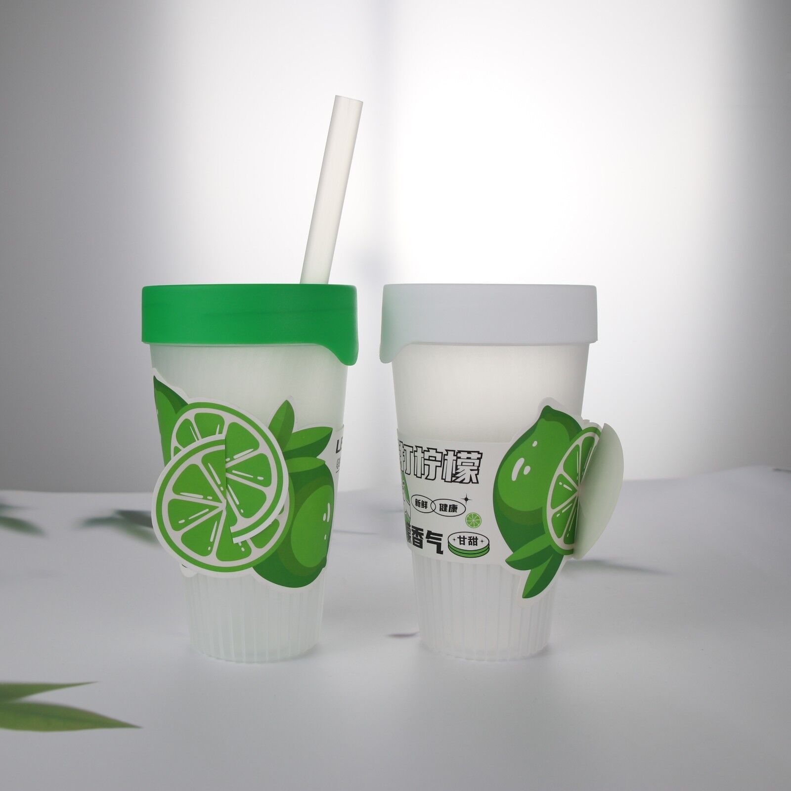 メーカー直供楽楽杯600ml耐高温縦紋ppミルクティーカップ網赤外線販売手レモンジュースカップ
