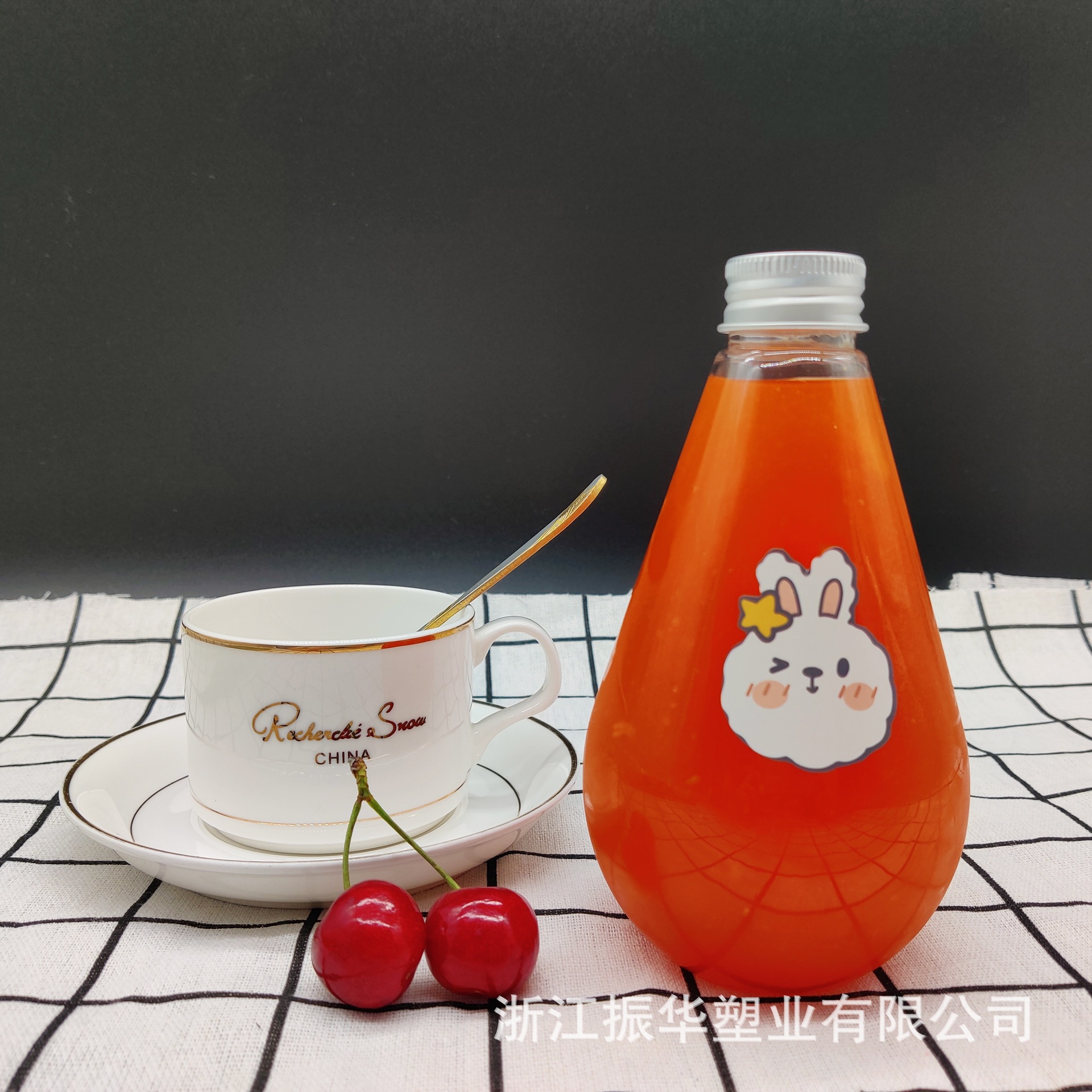 300ml創意水滴形ジュース瓶生乳瓶ジュース瓶円錐形プラスチック蓋付きプリントミルク茶瓶