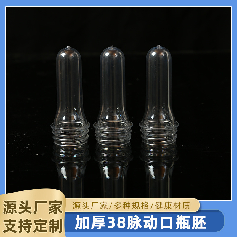 メーカーは38の脈動口の瓶の胚を供給して、透明なプラスチックの飲み物の瓶の胚のねじの口の管の胚の瓶の卸売りを厚くします。