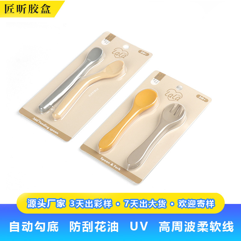 ブリスター包装カスタムベビーシリコンスプーンpet食品級ブリスタートレイ滑りブリスター紙カード