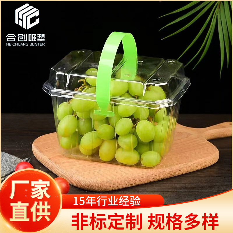 使い捨ての手提げ果物箱は透明なプラスチックスーパーの生鮮食品の包装箱と野菜の包装箱を厚くします。