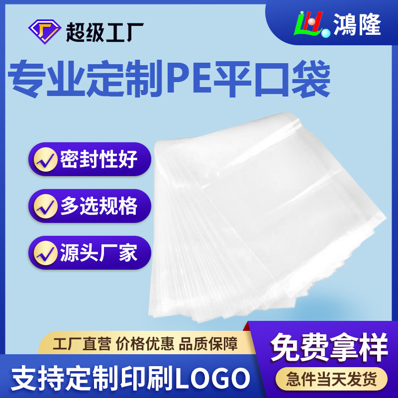 カスタム透明プラスチック包装袋peフラットポケット高圧透明ビニール袋食品級防湿収納袋pe袋