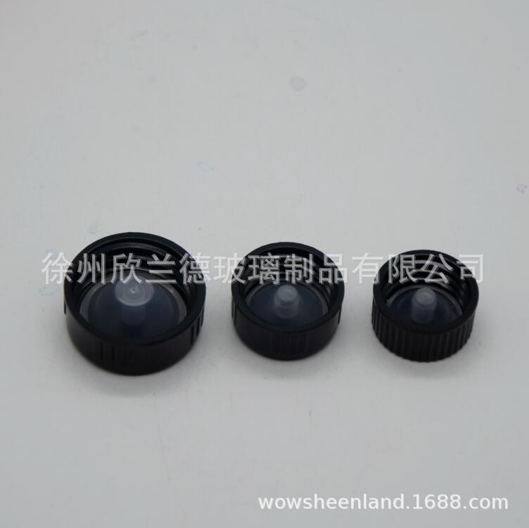 15口黒色中実蓋とガスケットねじ蓋精油瓶蓋ガラス蓋プラスチックキャップメーカー