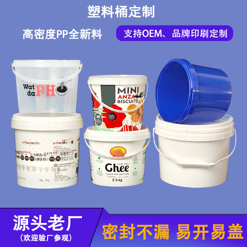 食品級手提げ蓋付きプラスチック製桶密封業務用小食桶包装桶米酒調味料桶果物桶卸売り