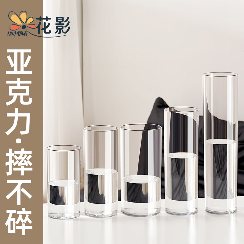 花影アクリル目が覚めた花のまっすぐな桶の花瓶の置物の客間の生け花のアクリルの高級感の水培の透明な落下防止