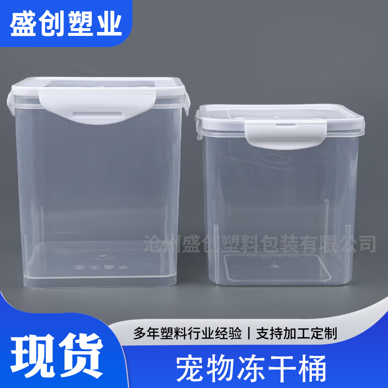 メーカースポット500グラム冷凍乾燥桶角型プラスチック桶楽ボタン蓋猫食糧犬食糧1斤入りプラスチック桶