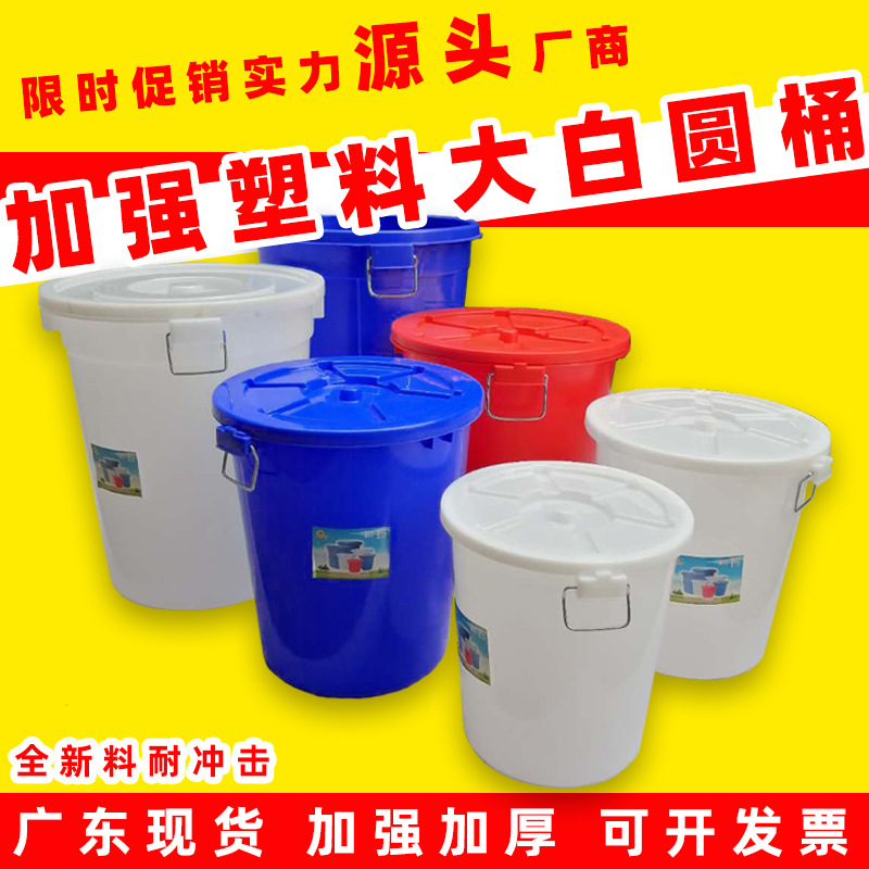 厚みのあるプラスチック製の大きな白いバケツ 200L 保存水貯蔵大型バケツ 100L 発酵バケツ白い蓋付き丸型ワインバケツ
