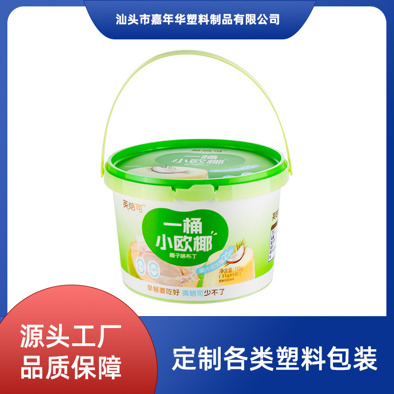 蓋付きPP食品グレードのプラスチック製ポータブルバケツ、厚みのある丸いバケツ、フルーツミルクティースナックバケツ、ソースザリガニ包装バケツ