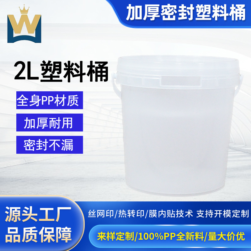 卸売厚みのある pp 密封されたプラスチック バケツ 2L フルーツ スナック ナッツ ミルク ティー バケツ ハンドル付きテイクアウト包装バケツ