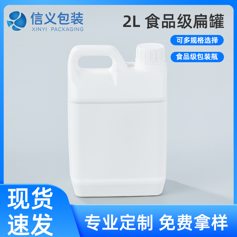 2リットルプラスチック製PE食品グレード包装ジュースシロップ小口径2リットル携帯用正方形白色平缶卸売