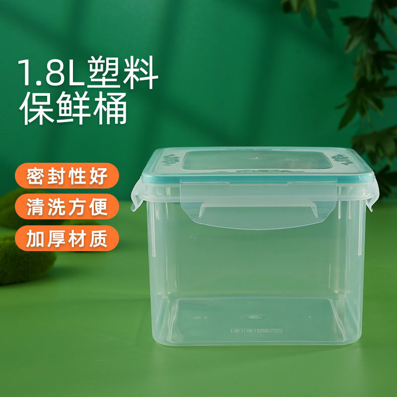クロスボーダー卸売透明プラスチックバレル冷凍乾燥バレル透明角バレルフラットバレル食品収納ボックス角型1.8lプラスチックボックス