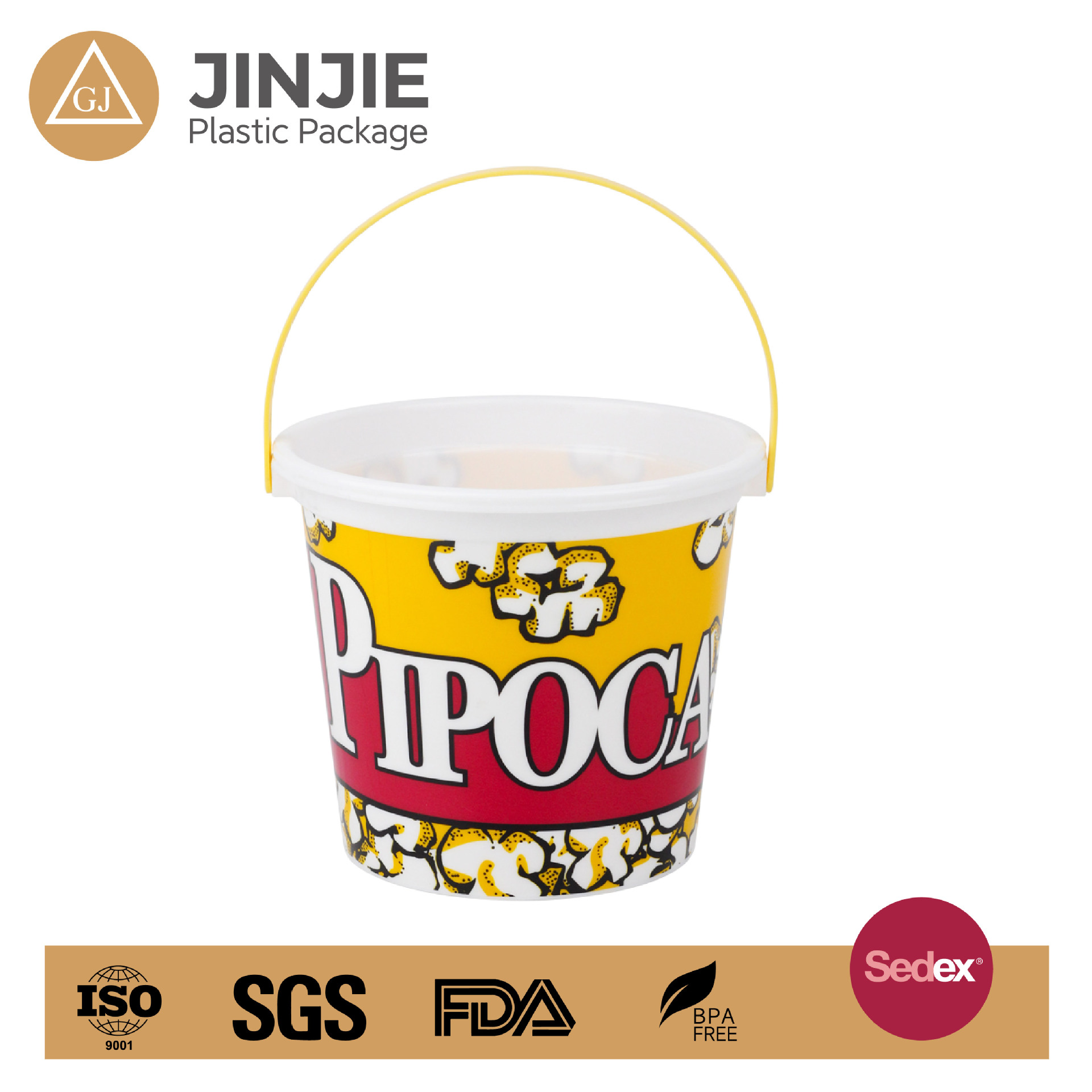 JJ漫画プラスチックポップコーンバケツ44オンス 成形プラスチックバケツ 持ち手付きプラスチック丸型バケツ ビーチおもちゃバケツ