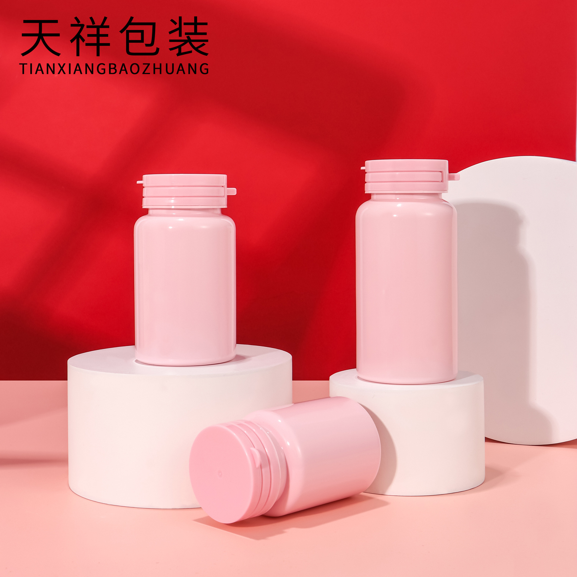 メーカー保健品瓶薬瓶卸売りプラスチック多規格医薬カプセル瓶ピンク蓋固体カルシウム錠剤